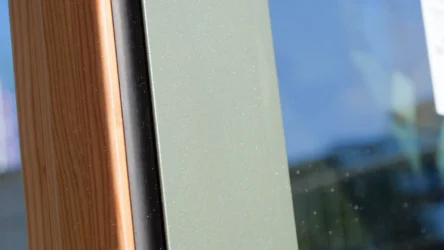 De houten binnenkant van de kozijnen wordt transparant afgewerkt. Aan de andere kant heeft de buitenzijde van de kozijnen een gepoedercoate aluminium bescherming van deels gerecycled aluminium. Deze buitenkant ziet er op esthetisch vlak prachtig uit in 5 verschillende kleuren: steenrood, donkerrood, donkergroen, grijsgroen en donkerblauw.