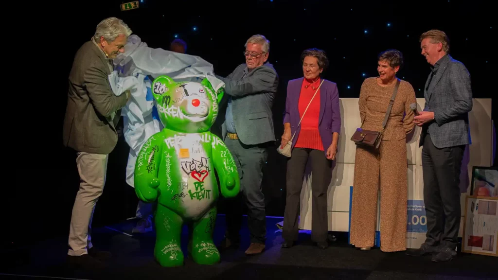 Een timmerfabriek die is omgetoverd tot een heus Winter Wonderland met feestverlichting, kerstbomen, ijsberen, een skigondel, entertainment en een uitgebreid aanbod eettentjes en foodtrucks. Vanzelfsprekend is er een dansvloer en een DJ die de zaal opwarmt voor de hoofdact: zanger Thomas Berge. Kortom, het was een tot in de puntjes verzorgd samenzijn van de circa 350 genodigden die op 22 november jl. het 100-jarig bestaan van Kievit Kozijn vierden. Eerder op de dag ontvingen eigenaren Toon en Robert van Wijngaarden de Gouden Ondernemerspenning van Ridderkerk. Tijdens het feest spraken het personeel en lang jarige relatie Vorm Bouw hun waardering uit voor Kievit als werkgever en toeleverancier. De oproep om ter gelegenheid van het jubileum te doneren aan de CliniClowns vond tot op de feestdag zelf dan ook veel navolging.